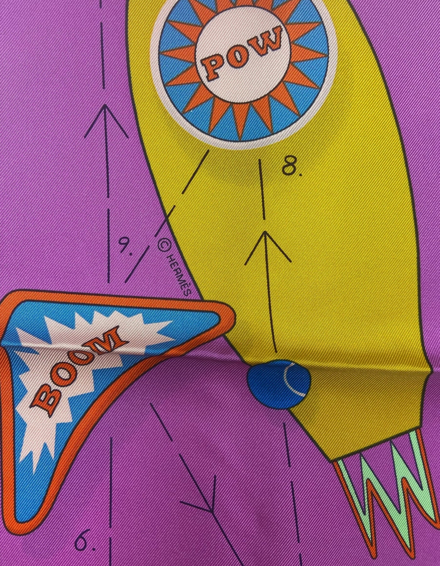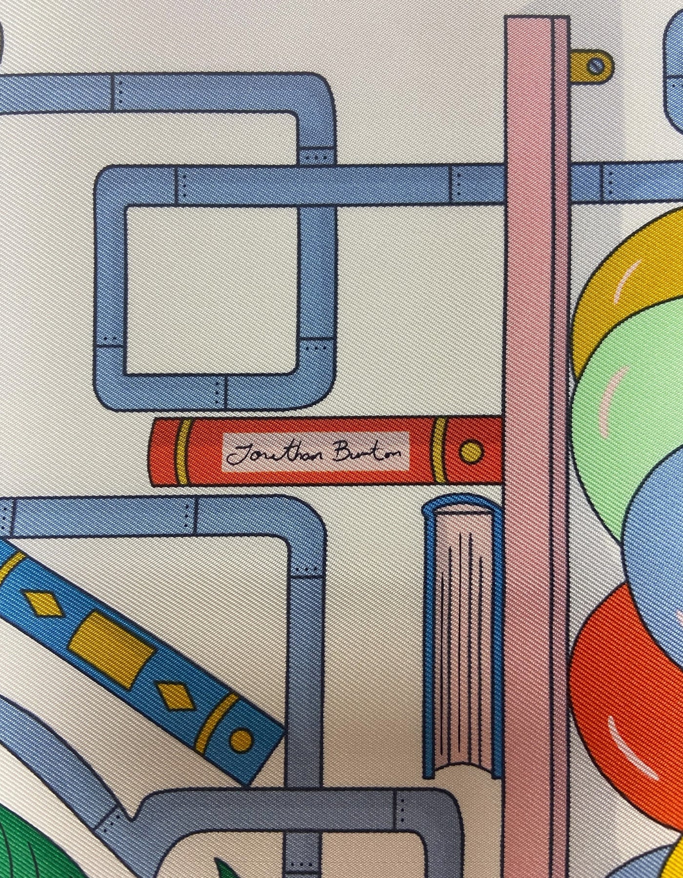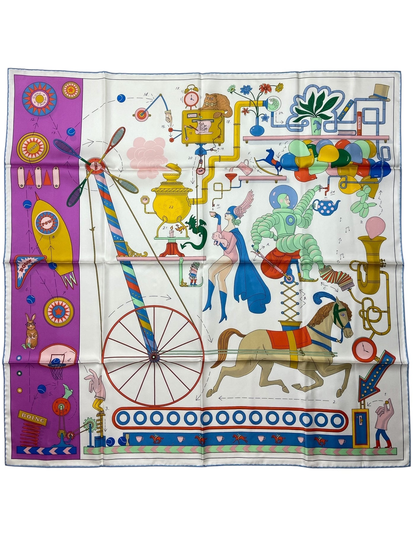 Regular price $465.00Hermes NEW Blanc/ Cyclamen Tea for Two 90cm Silk Scarf designed by Jonathan Burton