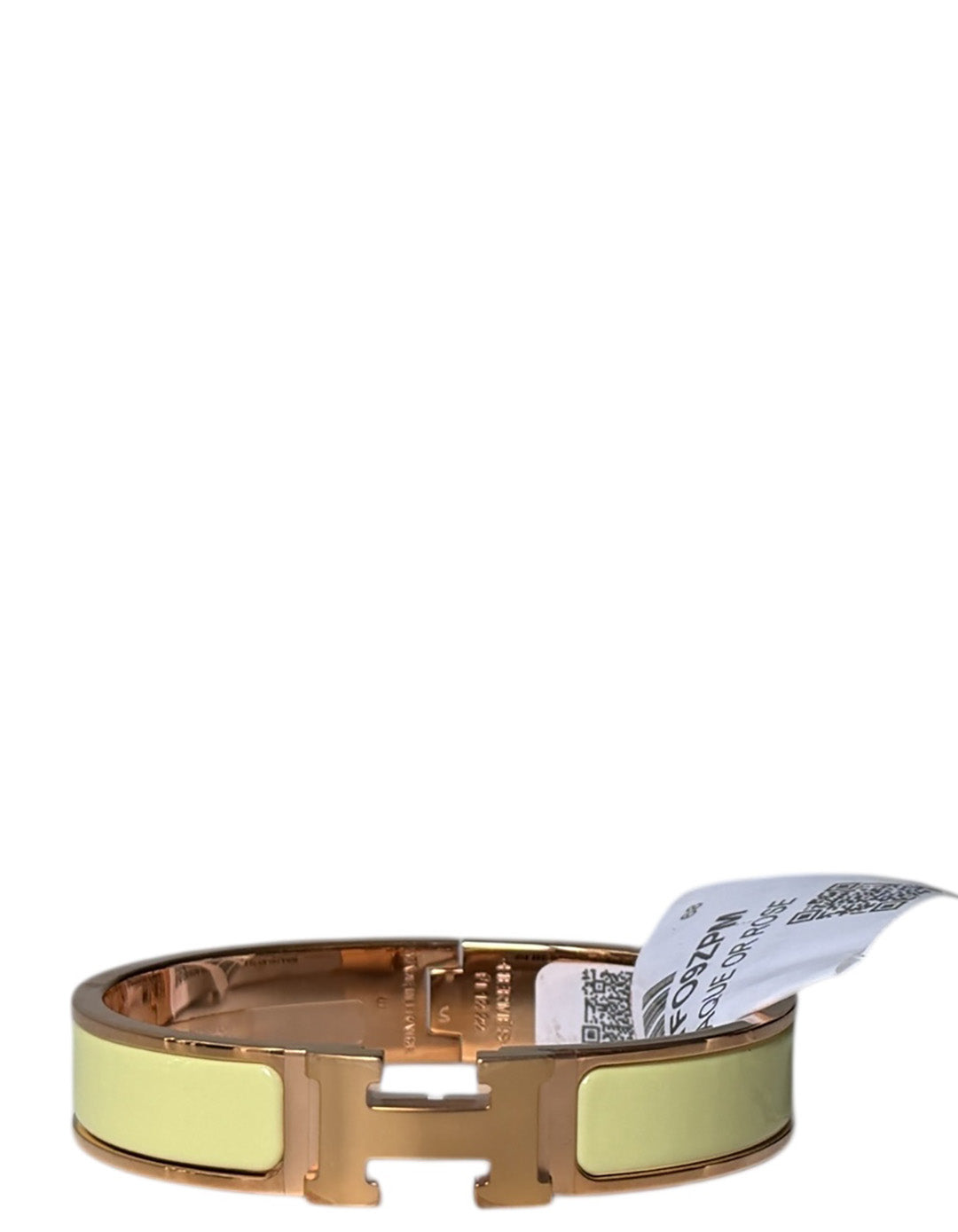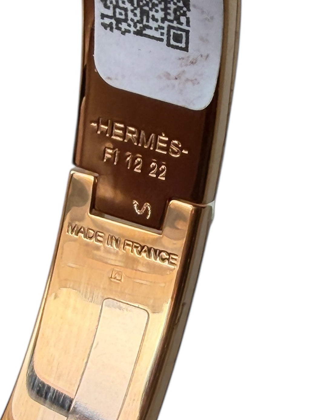 Hermes Poussin/Rose Gold Enamel H Clic Clac Bracelet sz PM