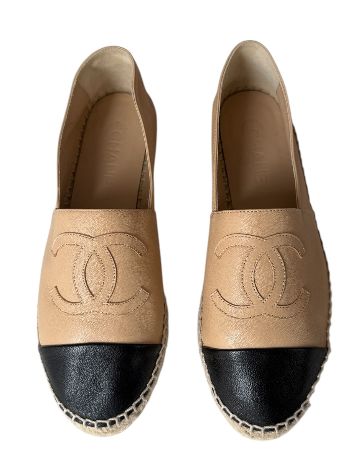 Regular priceChanel NEW Beige/Black Lambskin CC Espadrilles sz 39