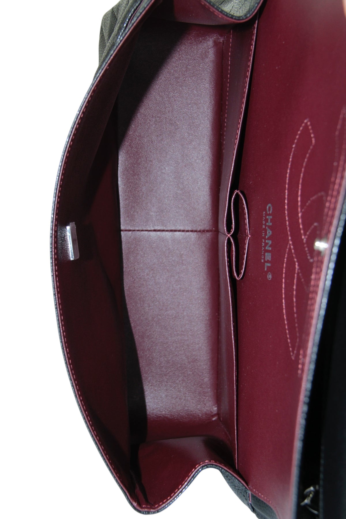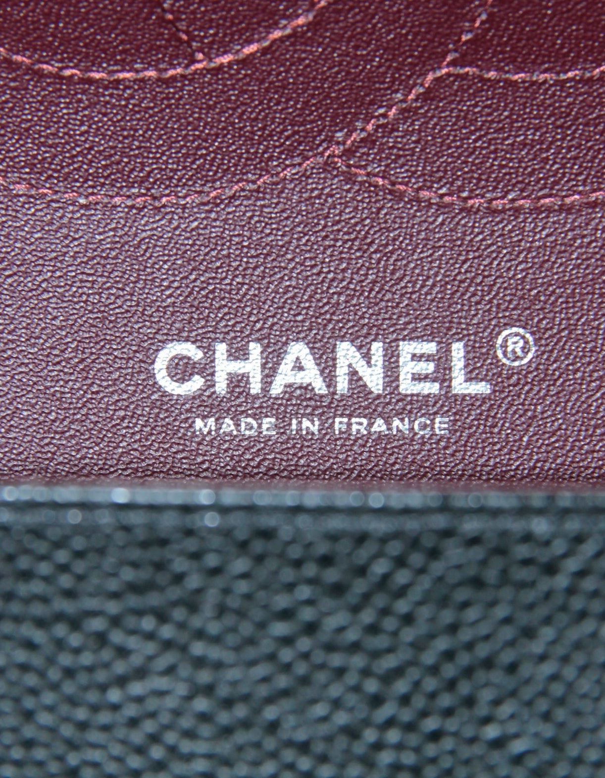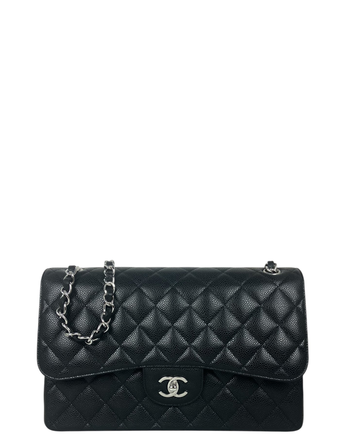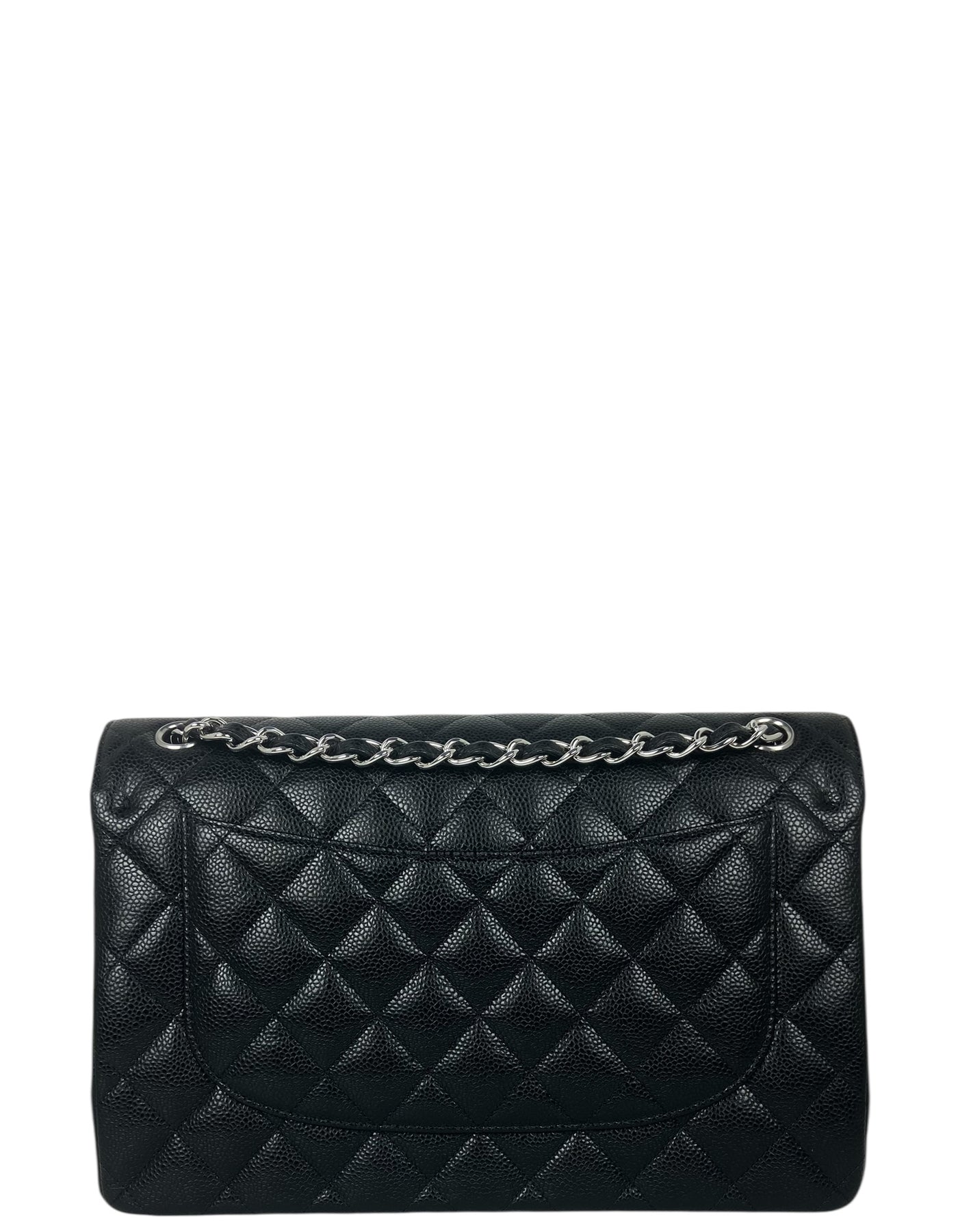 Chanel Black Caviar Leather Quilted Classic Double Flap Jumbo Bag.