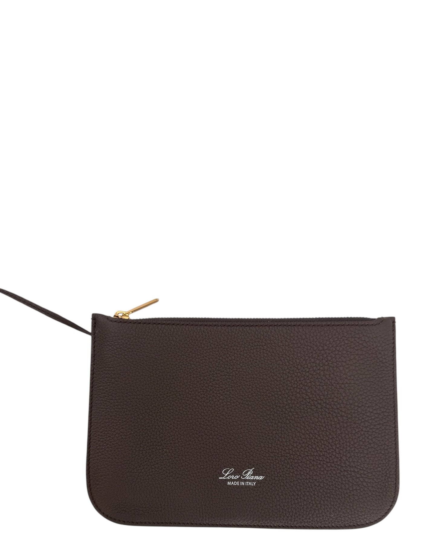 Loro Piana Dark Chocolate Licorice Brown Grained Calfskin Leather Large Bale Hobo w/ Strap