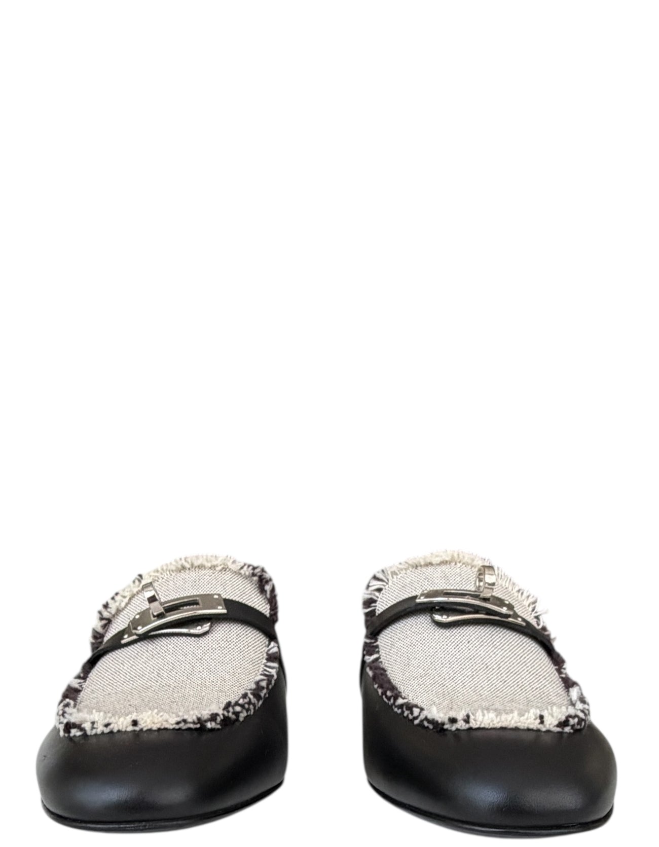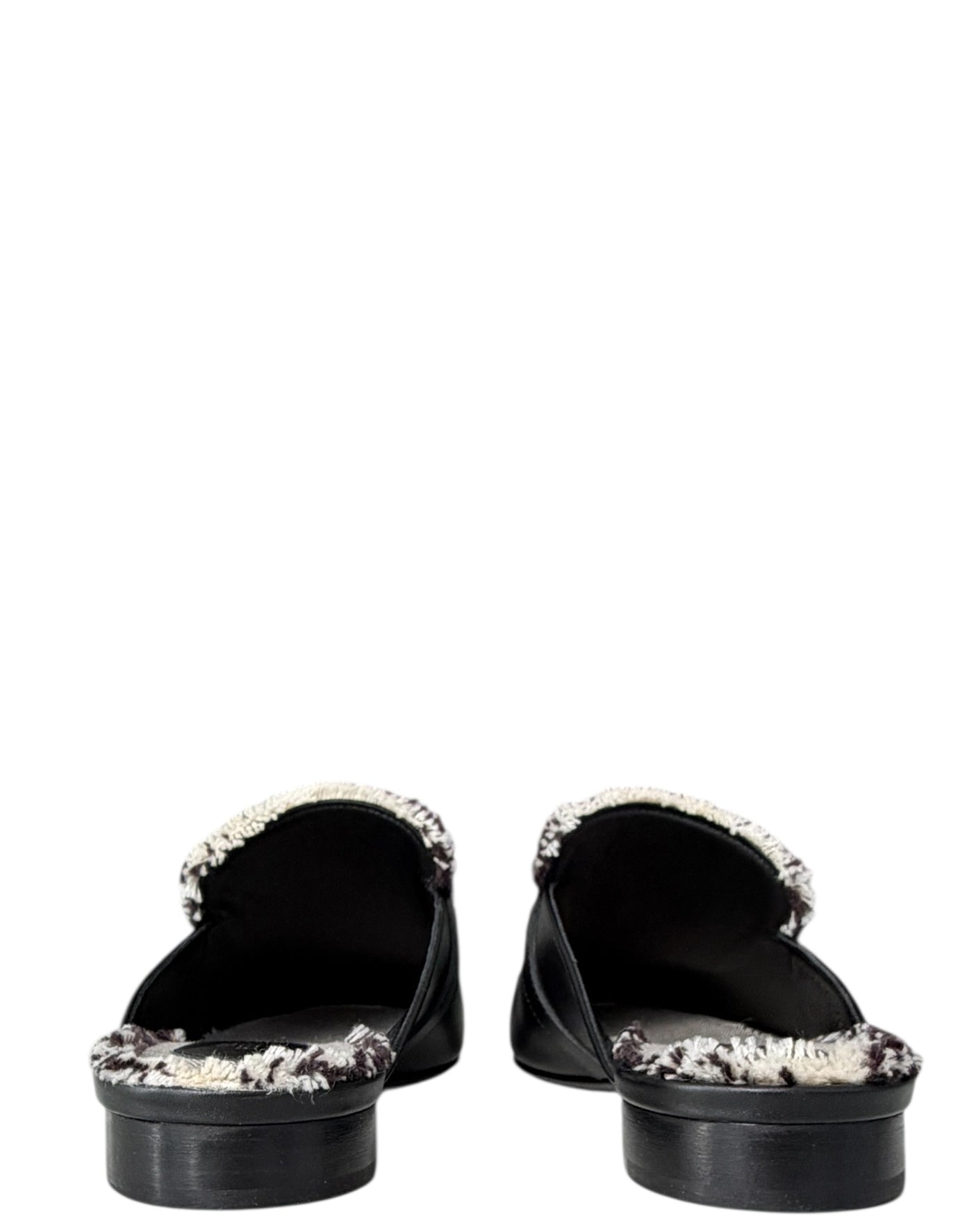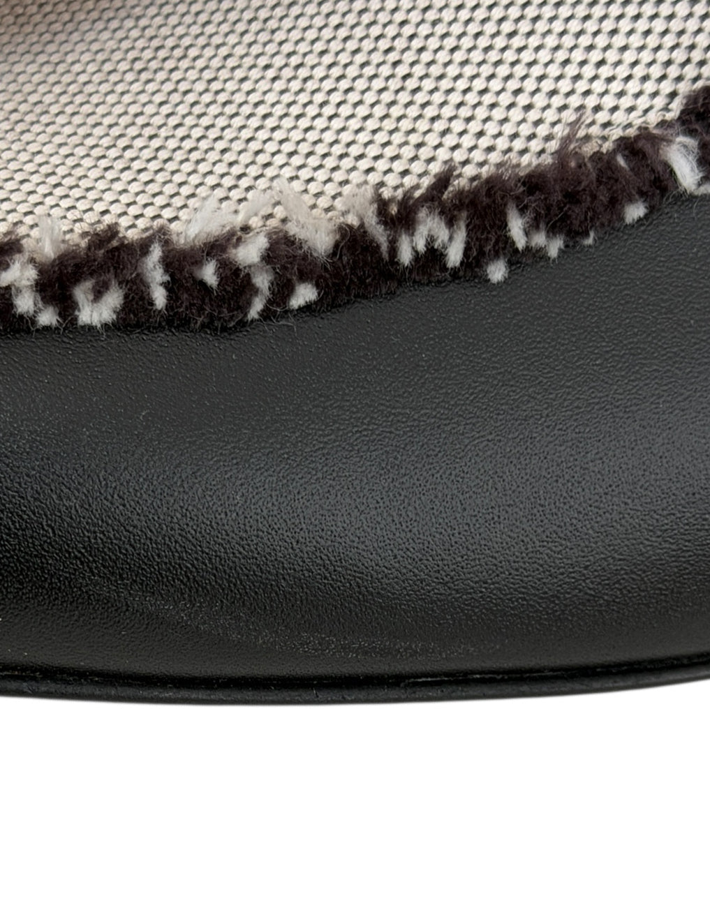 Regular price $845.00Hermes Black/White Toile Calfskin Fringe Oz Mules sz 39.5 with Palladium Kelly Buckle