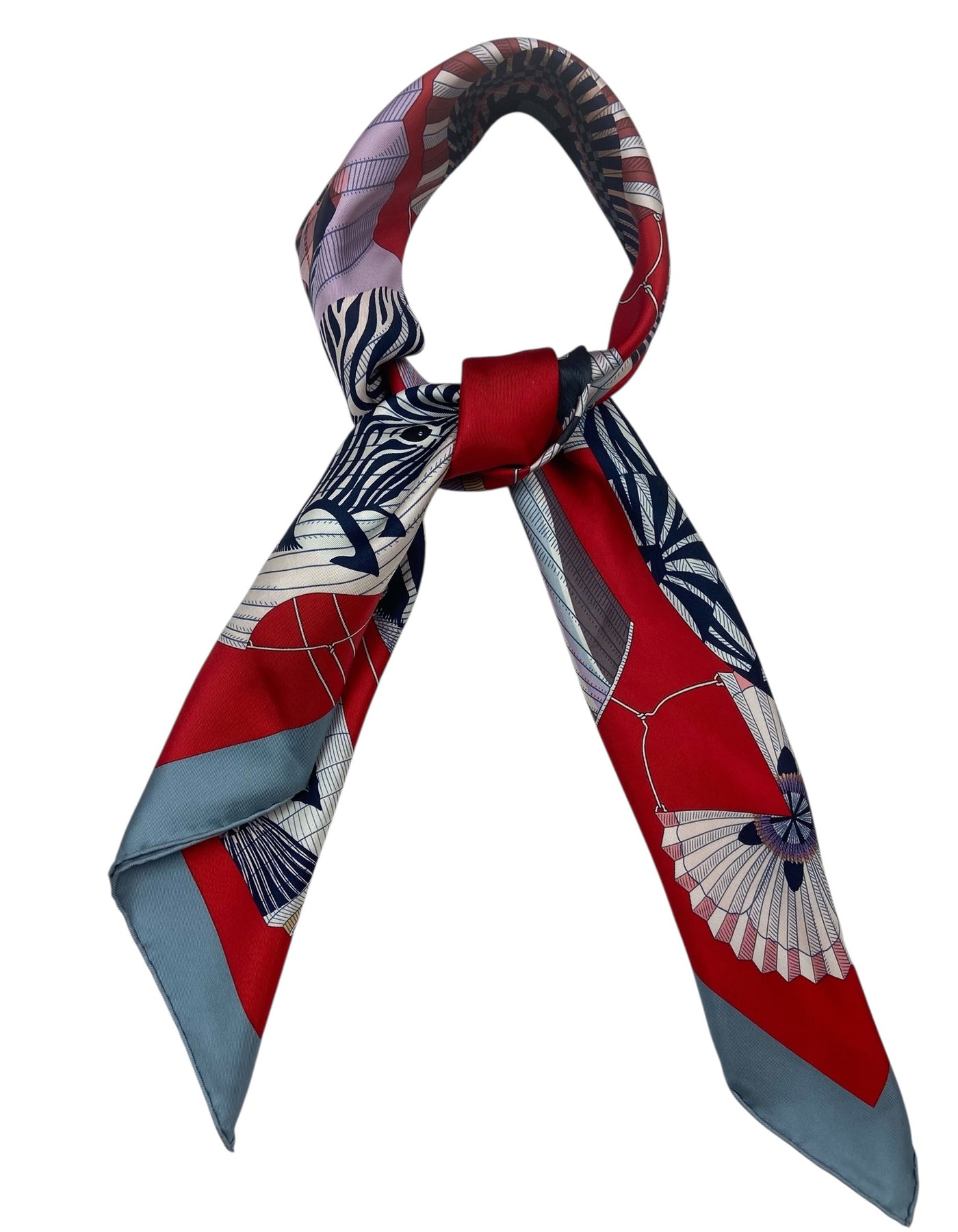 Regular priceHermes NEW Hermes Gris/Rouge/Mauve lLanternes Ballons et Cocardes 90cm Silk Scarf designed by Katie Scott