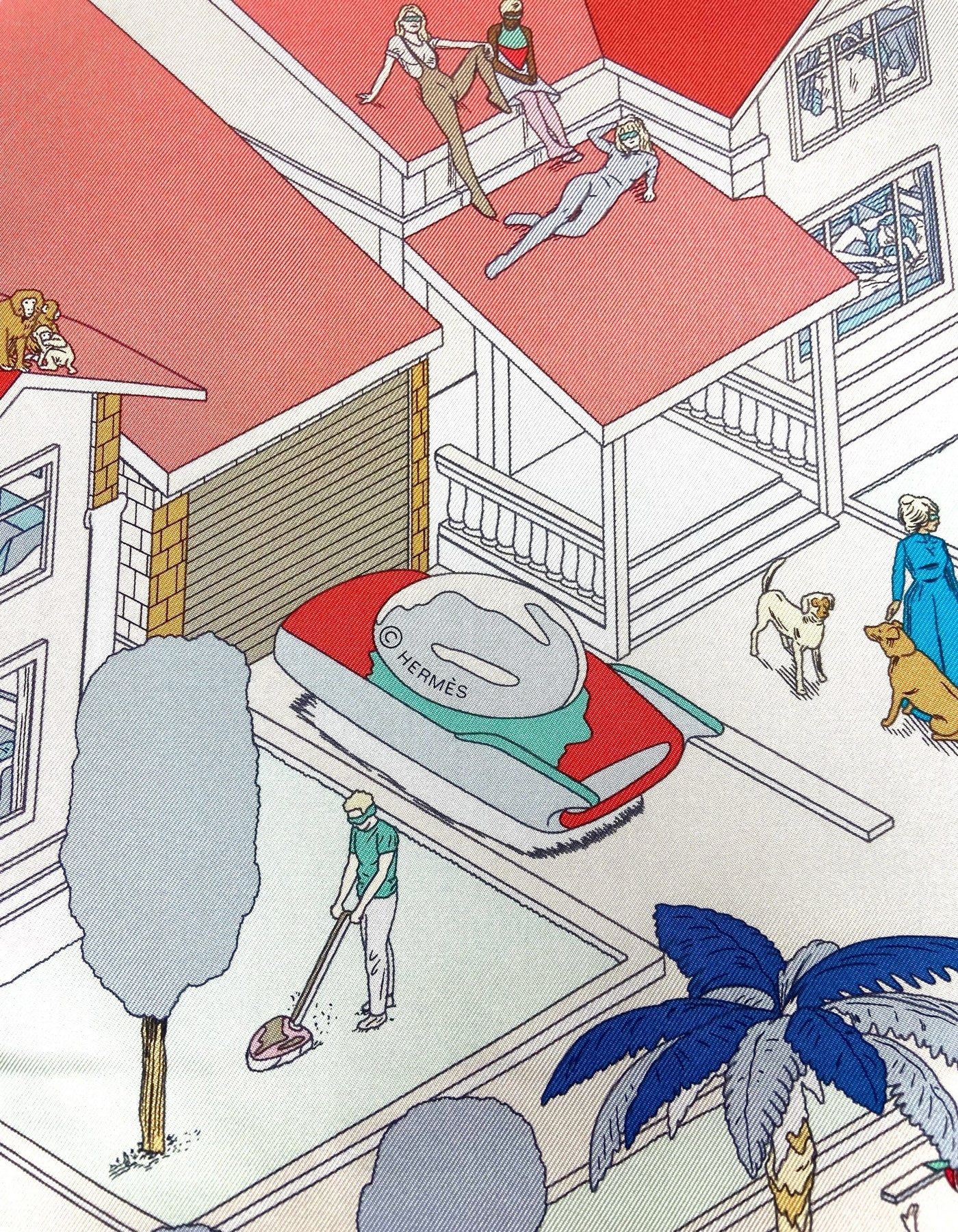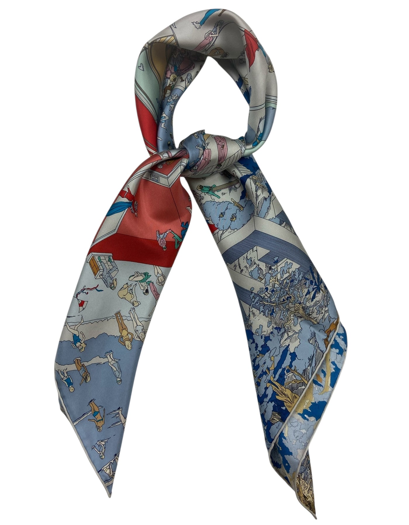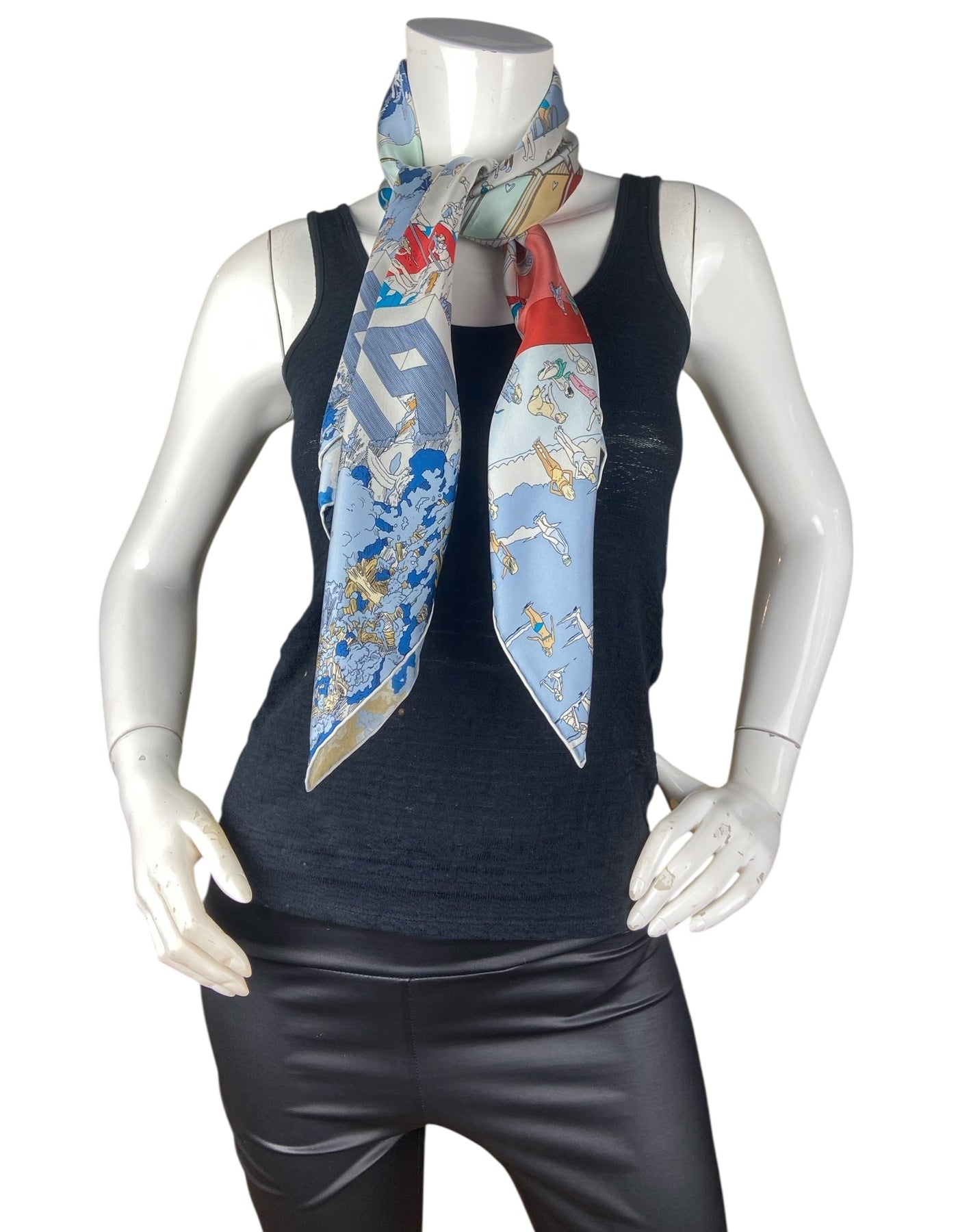 Regular priceHermes NEW Gris Argent/ Bleu/ Grenadine Hermes on the Beach 90cm Silk Scarf designed by Ugo Bienvenu