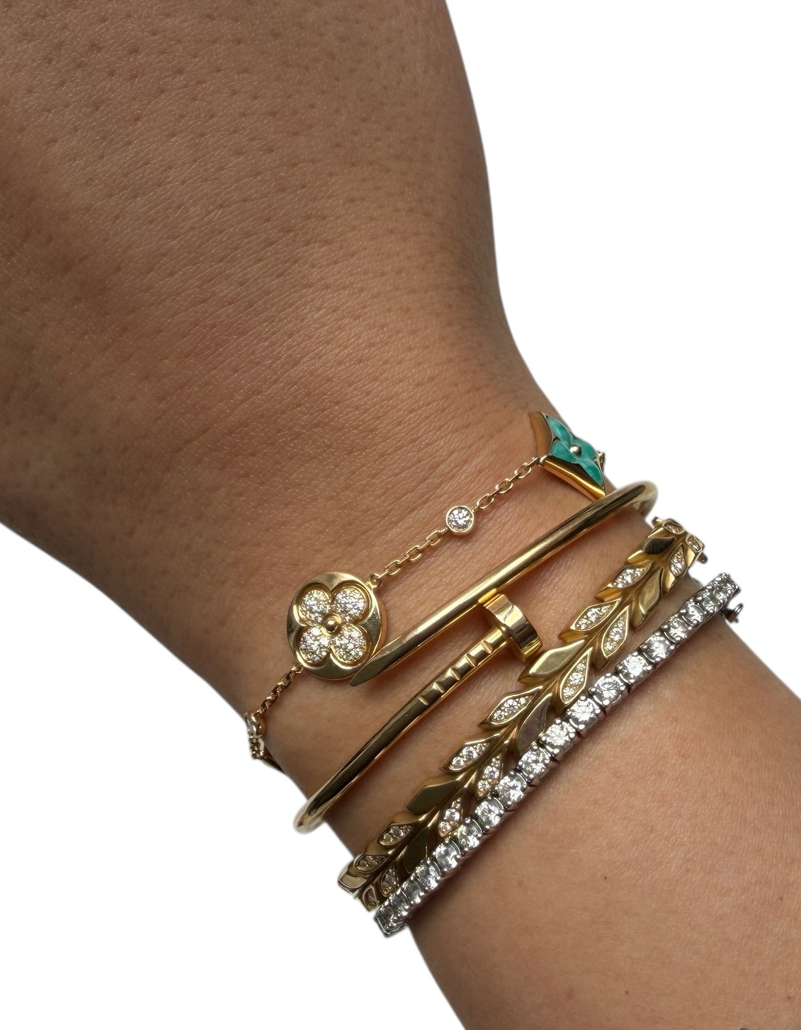 Louis Vuitton 18K Gold Diamond & Amazonite Color Blossom BB Star & Sun Bracelet. This delicate bracelet is great on it's own, or stacked with other bracelets.