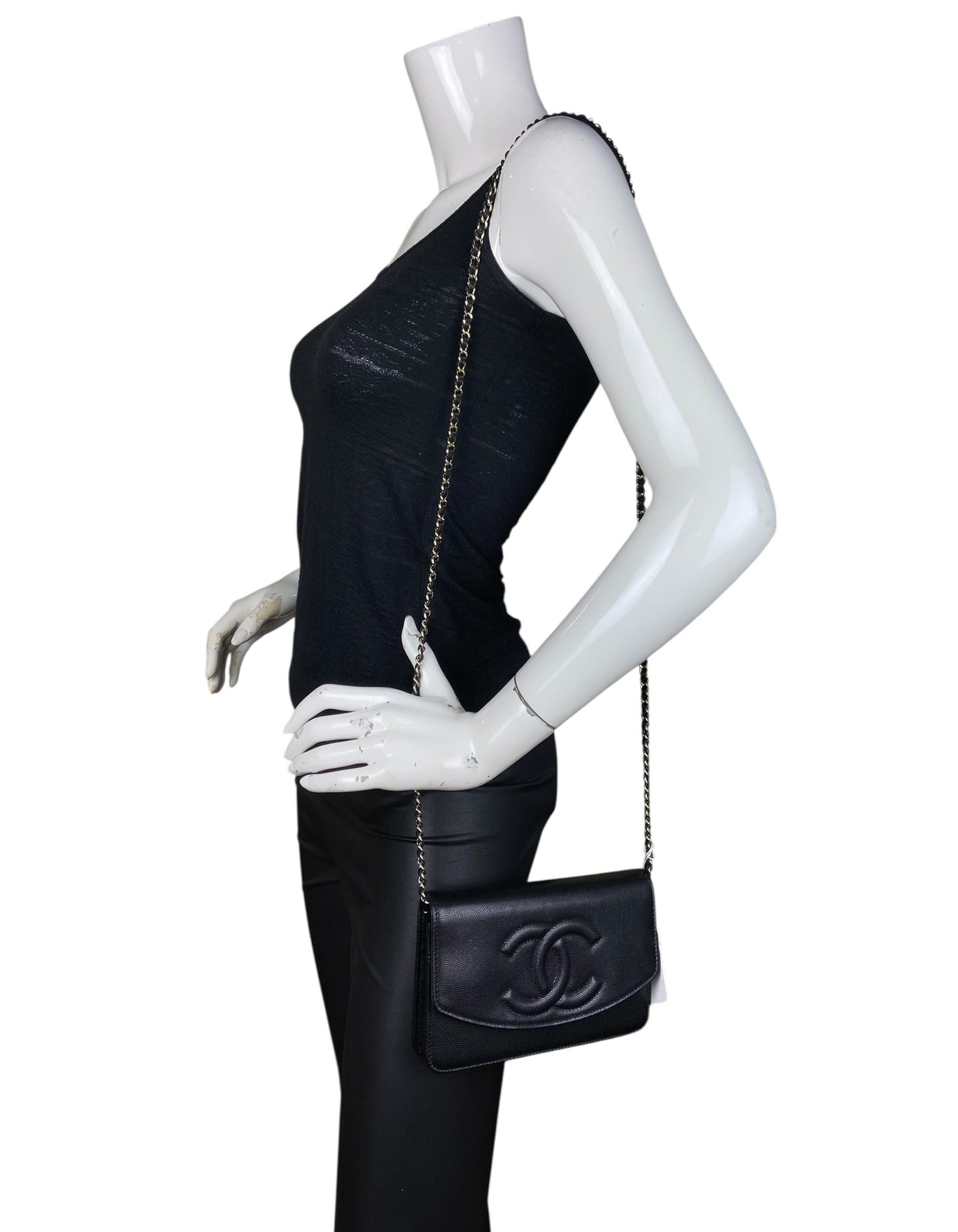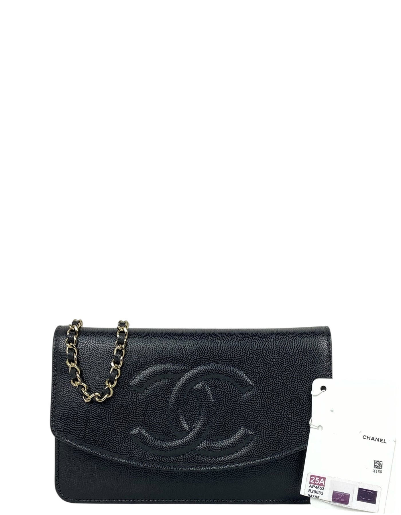 Regular price $2,695.00Chanel Black Caviar Leather 2025 Timeless CC Wallet On Chain WOC Crossbody Bag. Chain can be tucked inside bag to also be worn as a clutch.