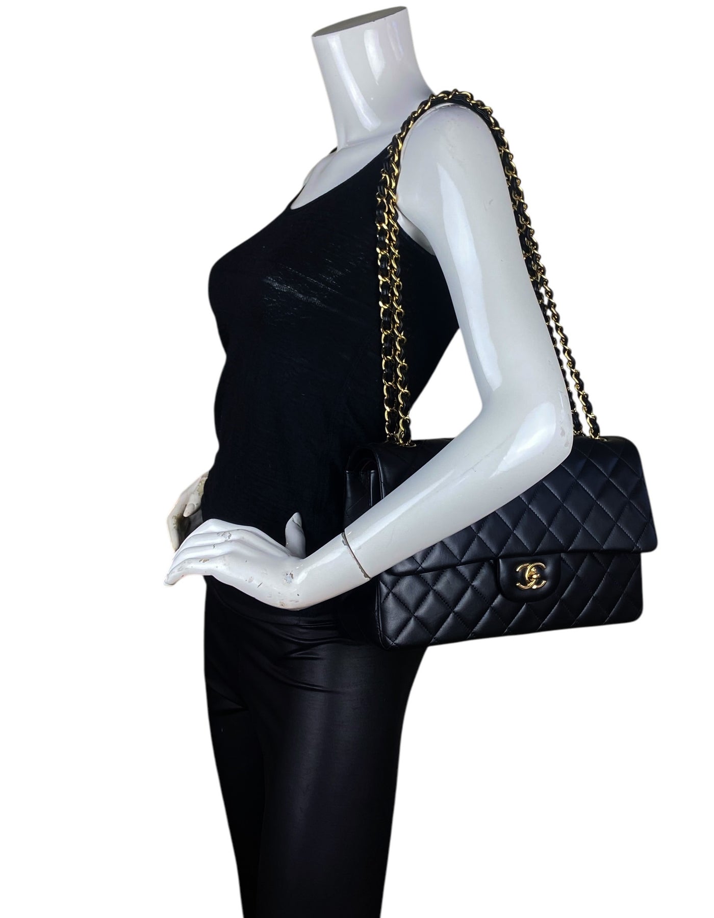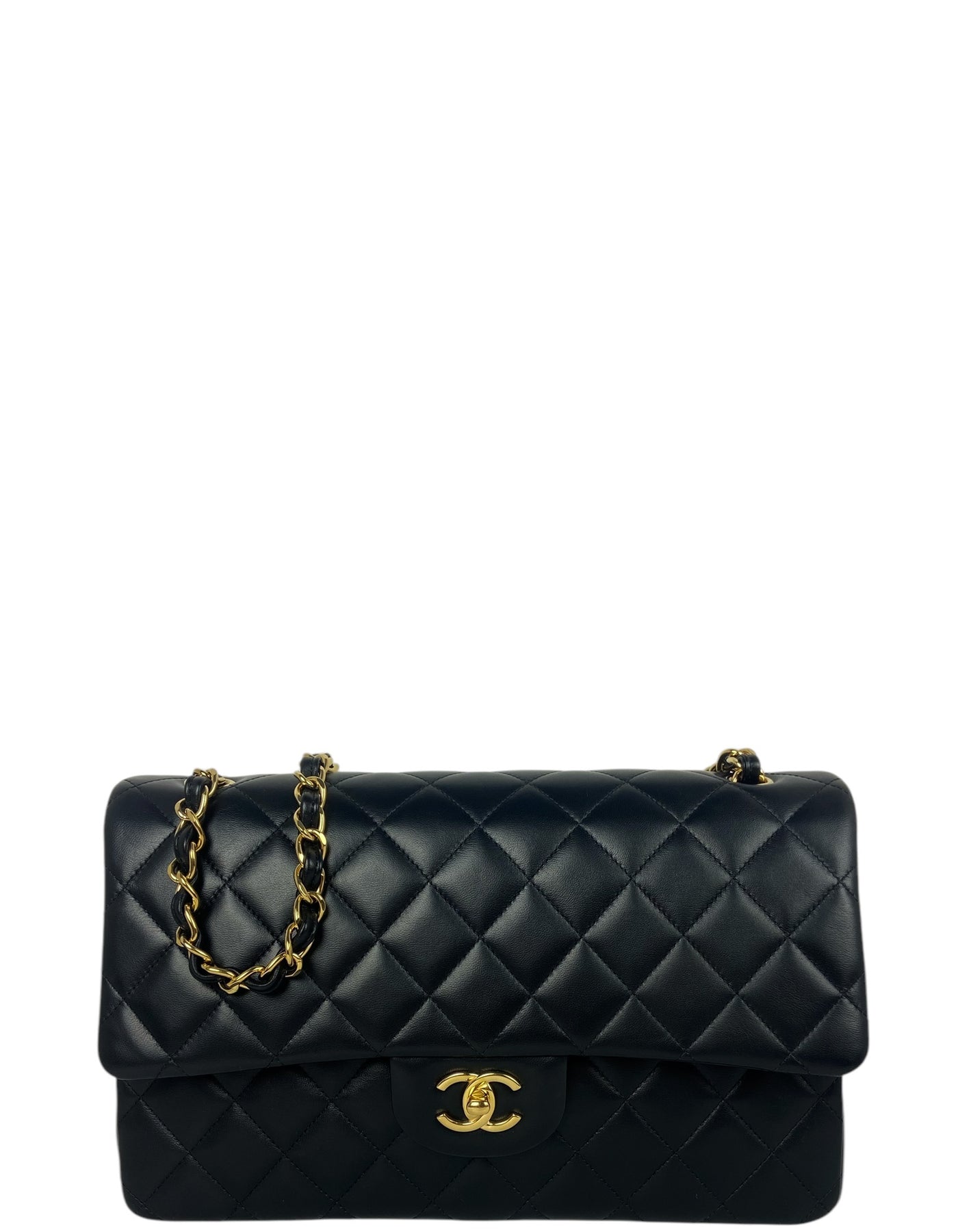 Regular price $8,995.00Chanel Black Lambskin Leather Quilted Classic Double Flap Jumbo Bag with Gold Hardware