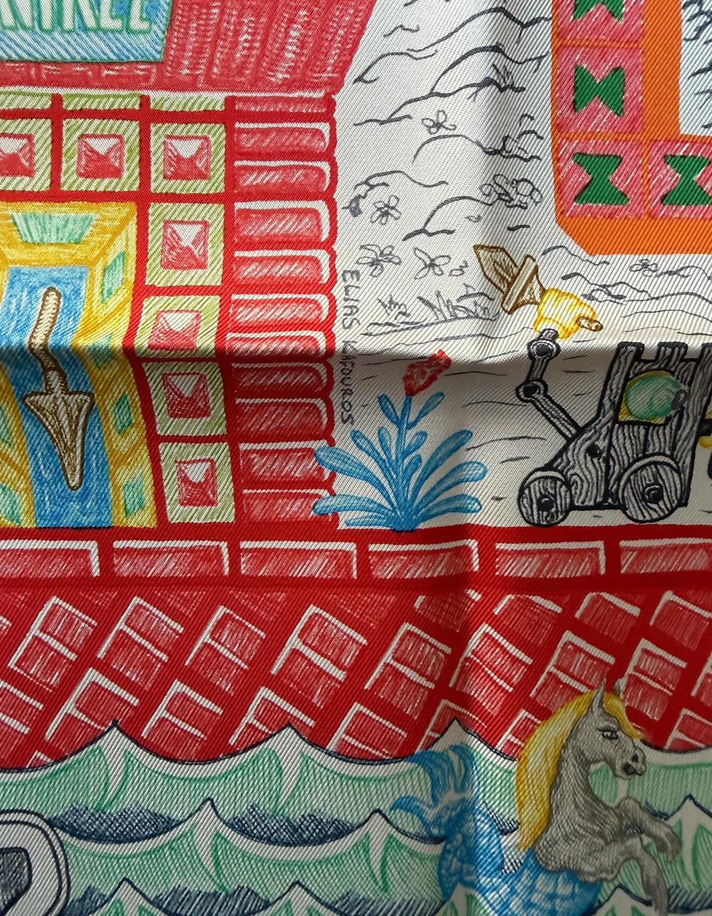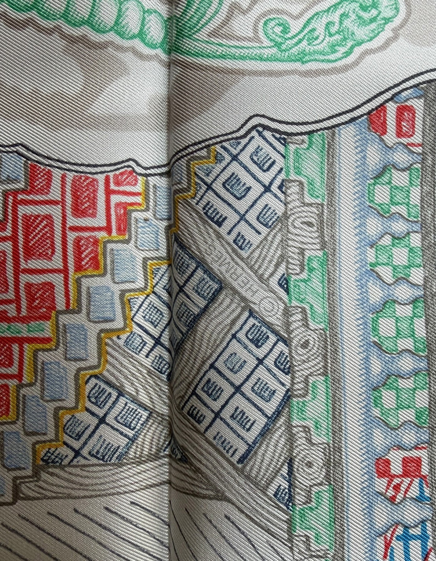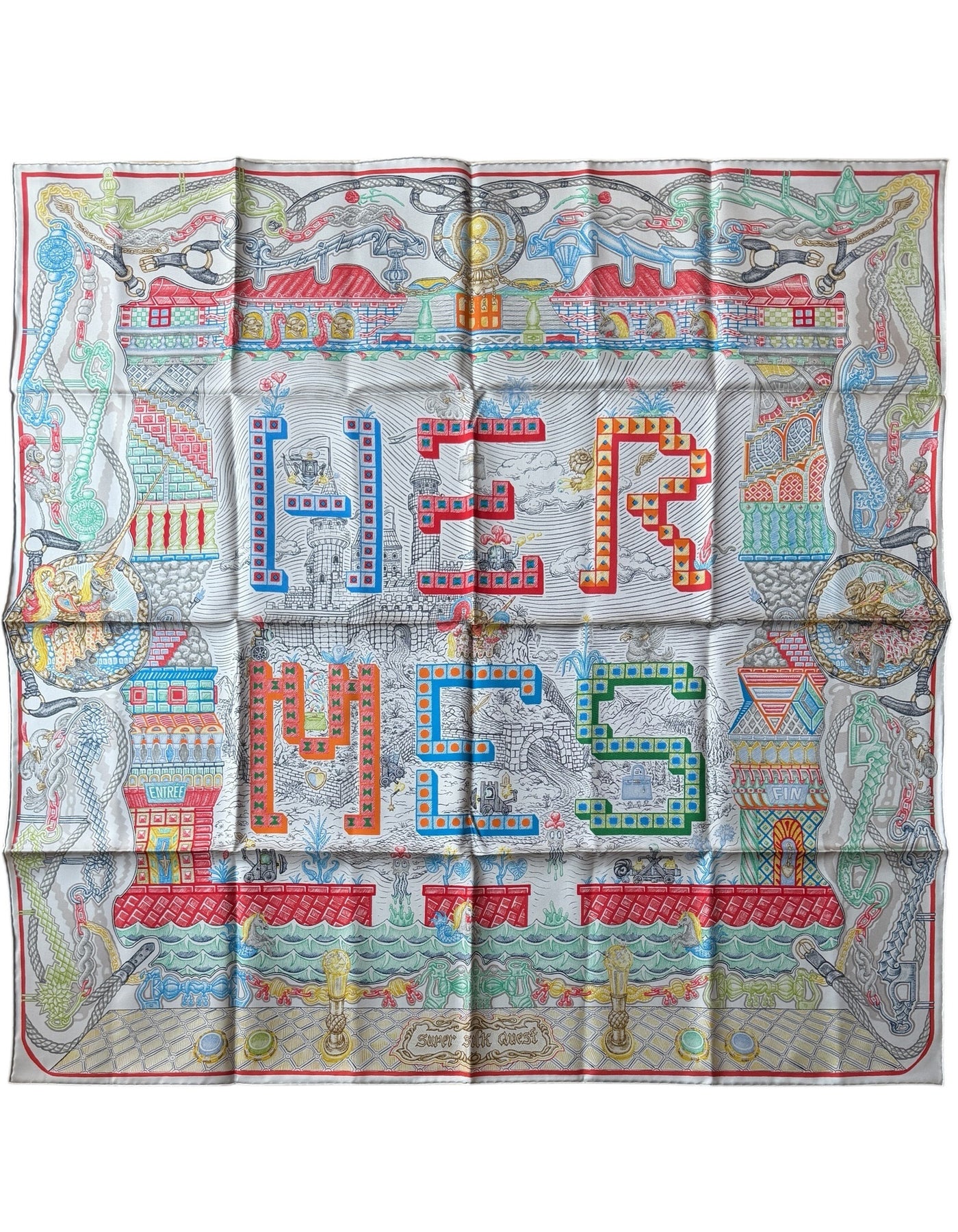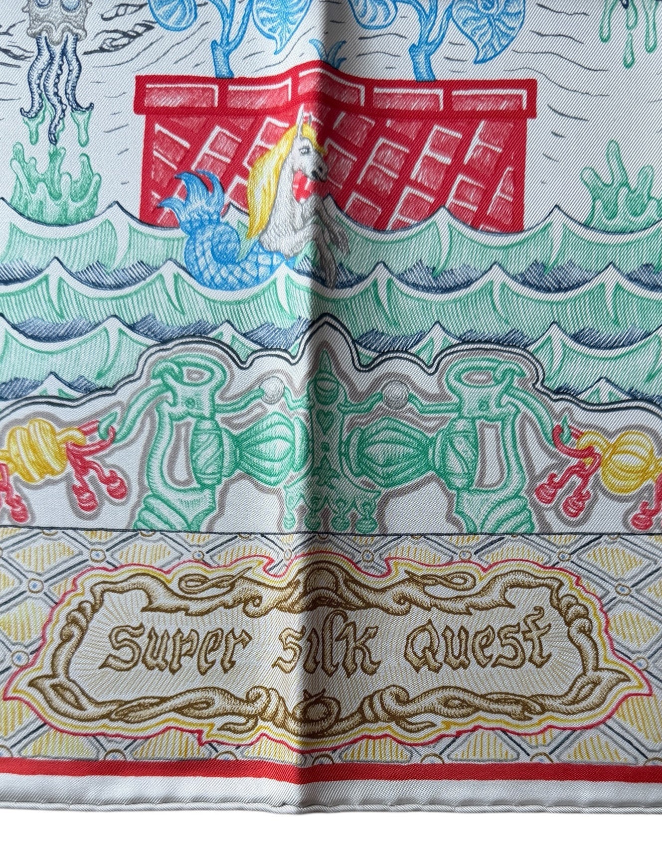 Regular price $595.00Hermes NEW Argent/ Corail/ Multi Super Silk Quest 90cm Silk Scarf designed by Elias Kafouros