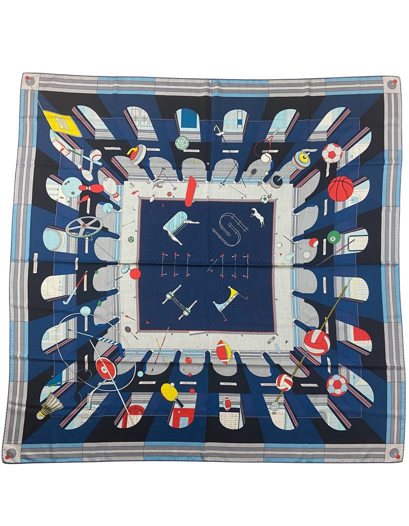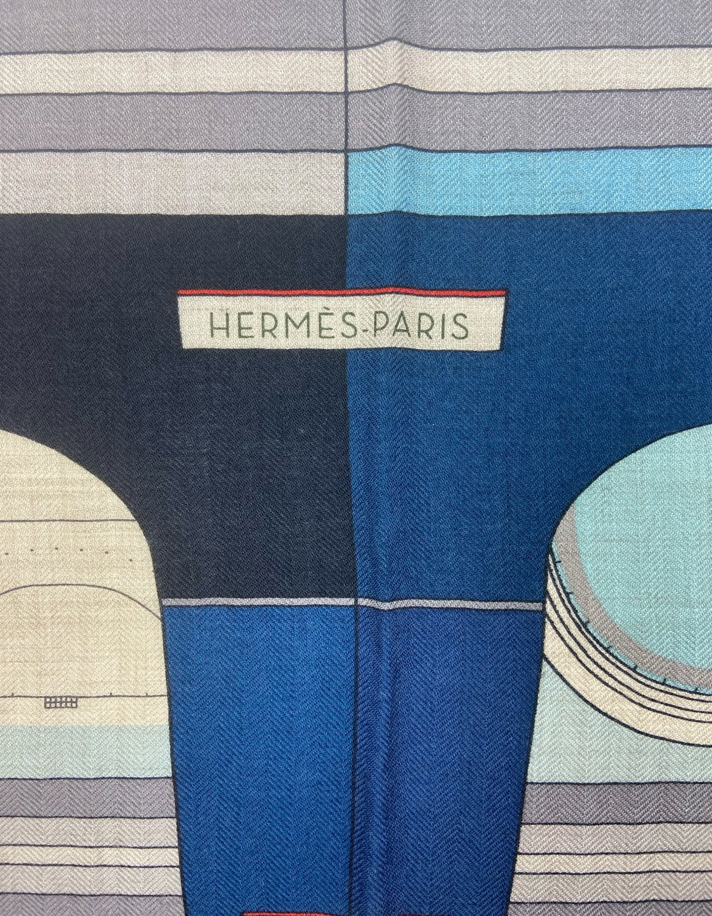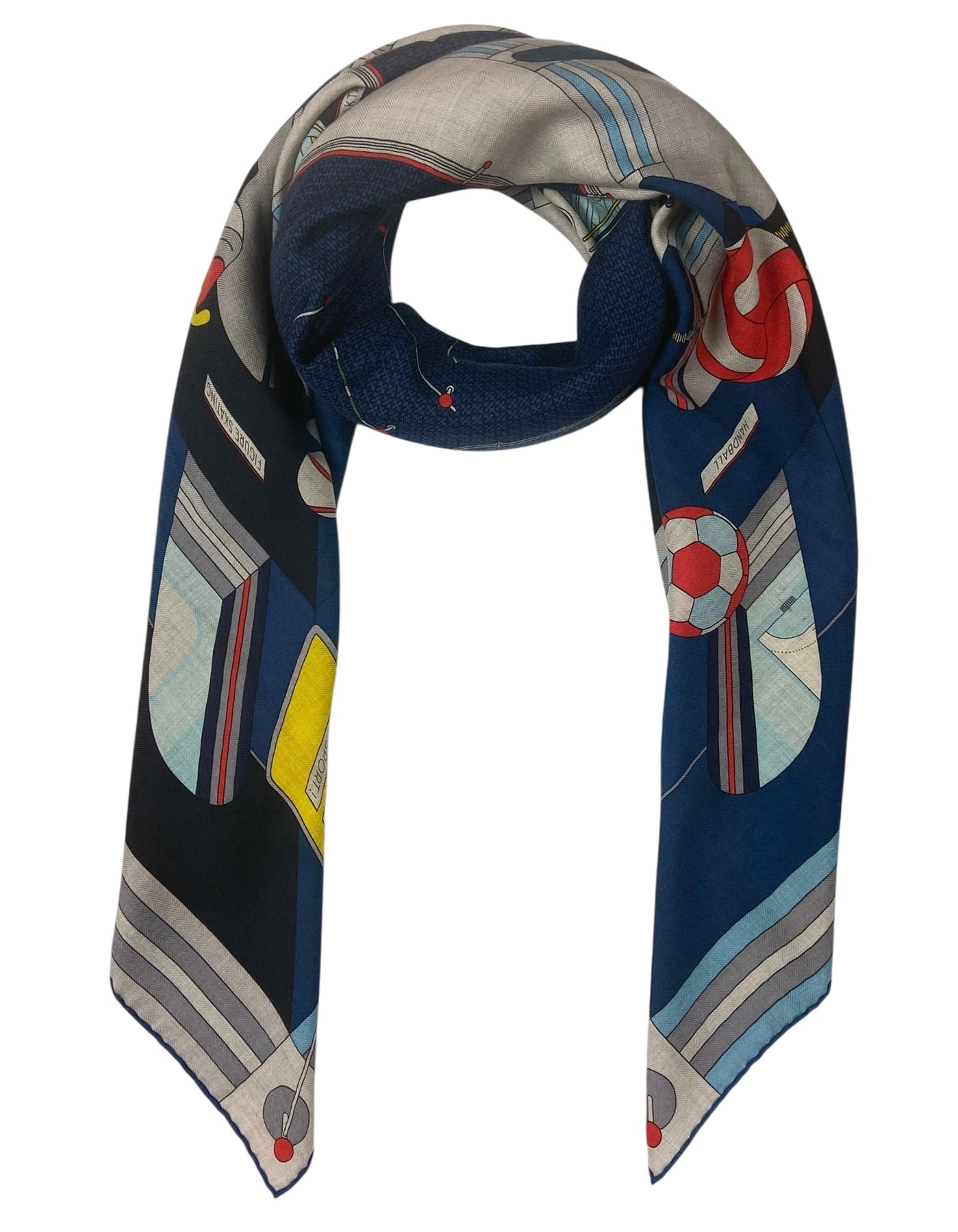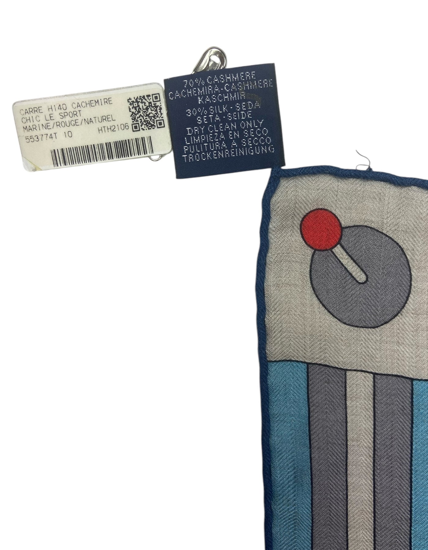 Regular price $1,085.00Hermes NWT Chic, Le Sport! Marine Blue/ Rouge/ Nautrel Silk/ Cashmere Shawl Scarf. Designed by Dongjoo Seo.